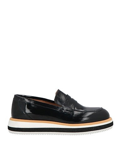 penny loafers, patent leather, plain colour, no appliqués, leather lining, round toe, flat, rubber cleated sole, contains non-textile parts of animal origin