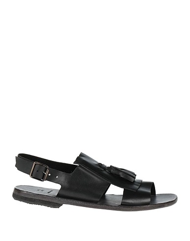 sandals, leather, plain colour, tassels, fringes, leather lining, buckle fastening, round toe, flat, leather/rubber sole, handmade, contains non-textile parts of animal origin, large sized