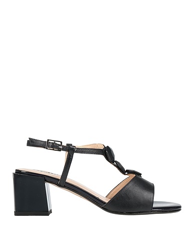 ankle strap sandals, leather, plain colour, no appliqués, leather lining, elasticated inserts, round toe, geometric heel, covered heel, rubber sole, contains non-textile parts of animal origin