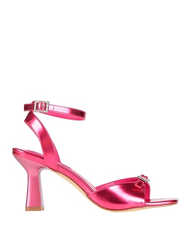 ankle strap sandals, coated fabric, metallic, plain colour with appliqués, buckle, crystals, leather lining, buckle fastening, square toe, spool heel, rubber sole, contains non-textile parts of animal origin