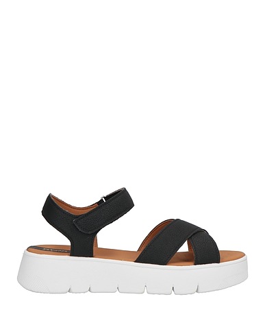 ankle strap sandals, coated fabric, plain colour, no appliqués, lined interior, velcro fastening, round toe, flat, flatform