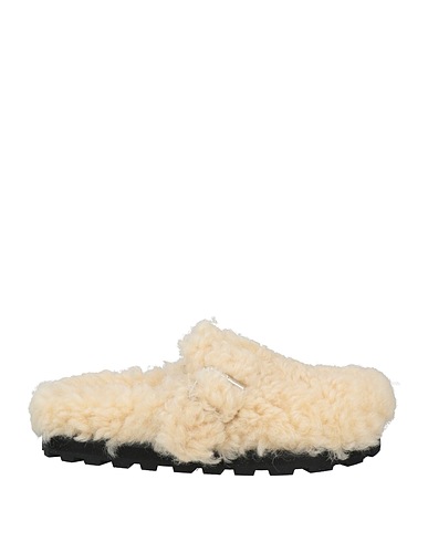 clogs, shearling, plain colour, no appliqués, round toe, flat, rubber sole, leather lining, contains non-textile parts of animal origin