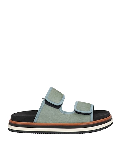 sandals, calf hair, woven, plain colour, no appliqués, fabric inner, round toe, flat, rubber sole, contains non-textile parts of animal origin