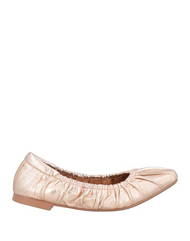 ballet flats, leather, metallic, plain colour, no appliqués, fully lined, round toe, flat, rubber sole, contains non-textile parts of animal origin