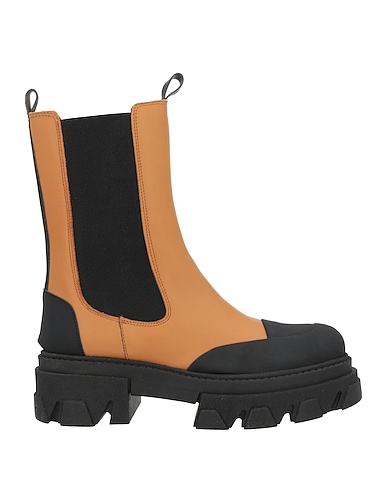 chunky boots, coated fabric, plain colour, no appliqués, fully lined, elasticated inserts, round toe, flat, lug sole