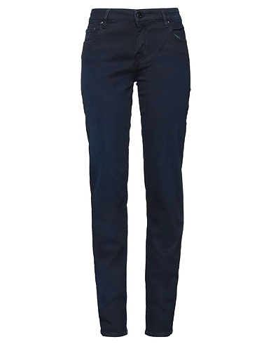 denim, no appliqués, plain colour, dark wash, mid rise, slim fit, stretch, straight-leg jeans