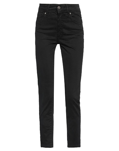 denim, leather applications, brand logo, solid colour, coloured wash, high waisted, tapered leg, slim-leg pants, zipper closure, button closing, multipockets, stretch, contains non-textile parts of animal origin, skinny model
