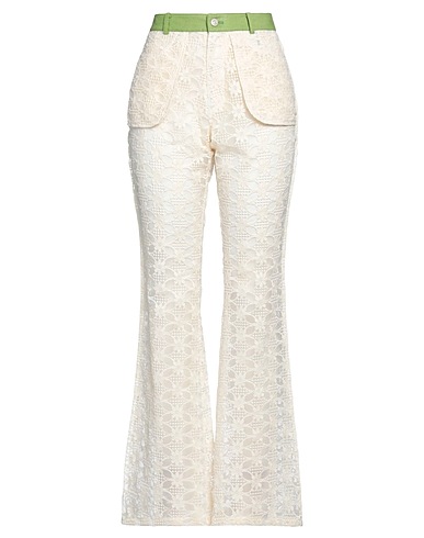 lace, brand logo, leather trims, two-tone, high waisted, belt loops, regular fit, unlined, 1 button, zip fastening, multipockets, dry clean, do not bleach, do not tumble dry, contains non-textile parts of animal origin, flared trousers