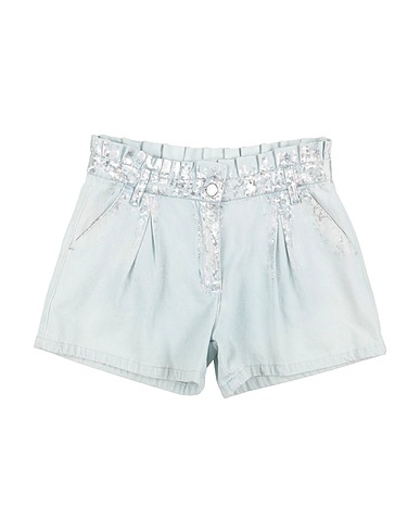 denim, plain colour with print, metallic print, light wash, 1 button, zip fastening, five pockets, hand wash, do not bleach, do not tumble dry, iron at 110° c max