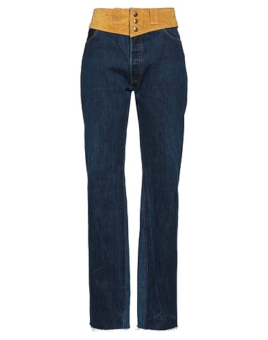 boot-cut jeans, denim, suede effect, brand logo, two-tone, dark wash, high waisted, belt loops, flared leg, regular fit, button fastenings, multipockets