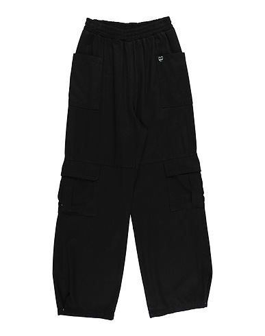 woven, brand logo, plain colour, elasticised waist, multipockets, machine wash or dry clean, do not bleach, do not tumble dry