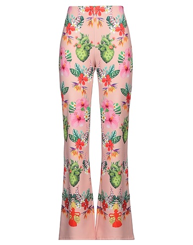 flared trousers, synthetic jersey, crystals, floral-print, high waisted, regular fit, zip fastening, without pockets, hand wash, do not bleach, do not tumble dry