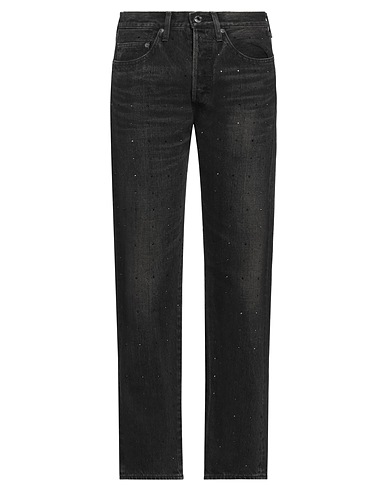 straight-leg jeans, denim, faded, crystals, plain colour with appliqués, coloured wash, high waisted, regular fit, concealed button fastenings, multipockets, dry clean, do not bleach, do not tumble dry