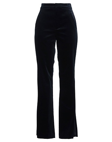 flared trousers, velvet, stretchy fabric, two-tone, side seam stripes, high waisted, regular fit, hook fastenings, zip fastening, pockets, dry clean, do not bleach, do not tumble dry