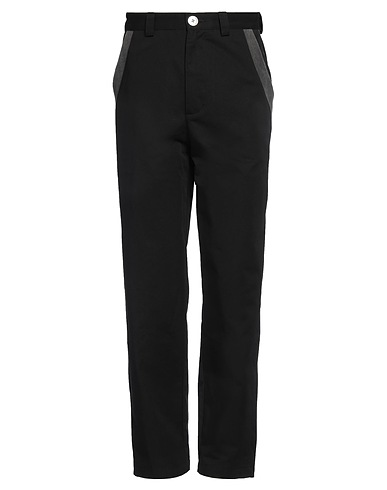 casual trousers, gabardine, coated fabric, two-tone, no appliqués, high waisted, belt loops, straight leg, regular fit, 1 button, zip fastening, multipockets, dry clean, do not tumble dry