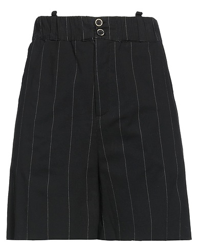 shorts, woven, pinstriped, no appliqués, high waisted, belt loops, zip fastening, 1 button, multipockets, hand wash or dry clean, do not bleach, do not tumble dry