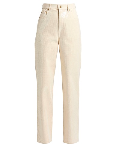 straight-leg jeans, denim, plain colour with appliqués, sequins, coloured wash, high waisted, regular fit, zip fastening, 1 button, multipockets, machine wash or dry clean, do not bleach, do not tumble dry, this brand runs large