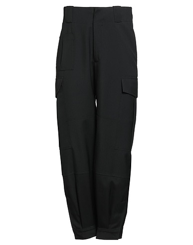 cargo trousers, twill, plain colour, no appliqués, high waisted, belt loops, relaxed fit, hook fastenings, zip fastening, multipockets, dry clean, do not bleach, do not tumble dry, contains non-textile parts of animal origin