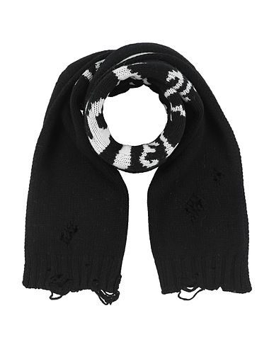 scarf, wool, distressed, lightweight knit, two-tone, brand logo, dry clean, do not bleach, do not tumble dry