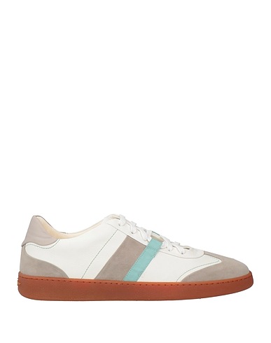 low-top trainers, leather, two-tone, brand logo, leather lining, lace-up, round toe, rubber sole, contains non-textile parts of animal origin, large sized