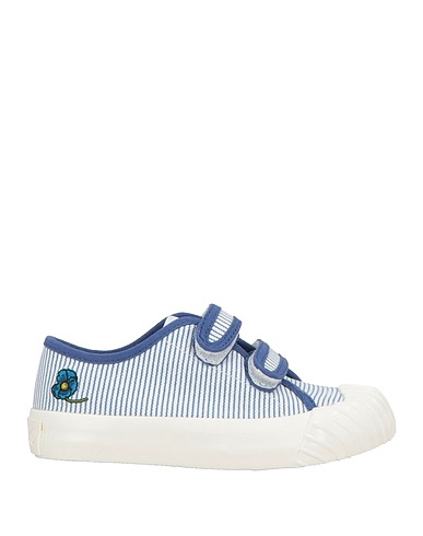 low-top trainers, canvas, brand logo, embroidered, striped, fabric inner, velcro fastening, round toe, rubber cleated sole