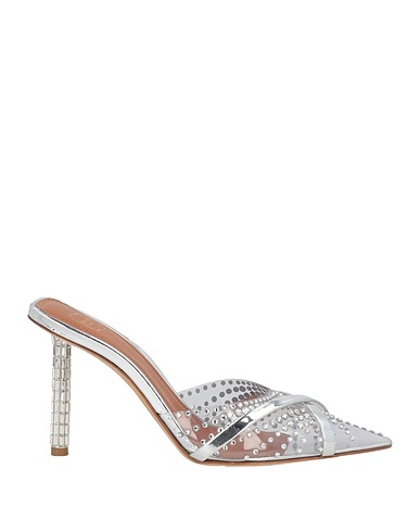 mules, plastic, metallic, plain colour with appliqués, crystals, leather trims, leather lining, pointed toe, geometric heel, leather sole, contains non-textile parts of animal origin, small sized