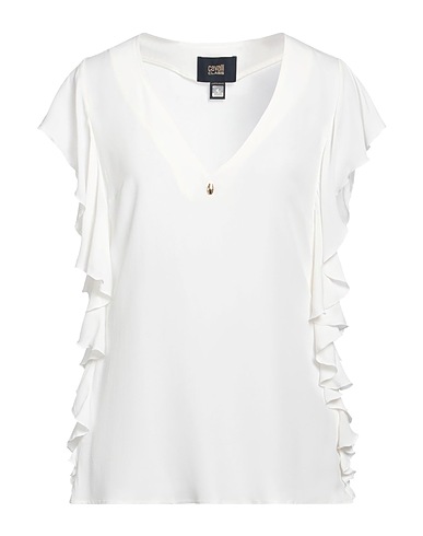 ruched top, crepe, plain colour, brand logo, ruffles, v-neck, short sleeves, zip fastening
