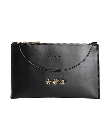 clutch, coated fabric, plain colour with appliqués, brand logo, zip fastening, fully lined, internal pockets, detachable shoulder strap, medium
