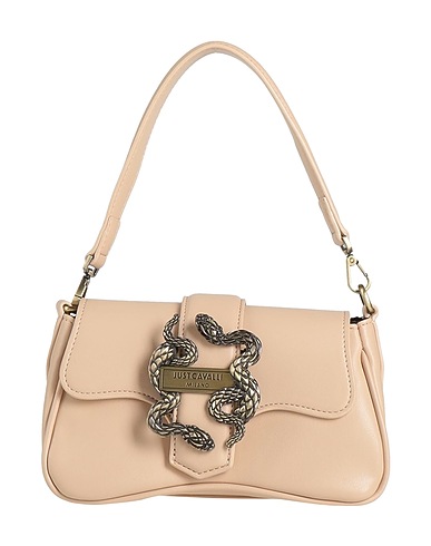 flap bag, synthetic material, plain colour with appliqués, brand logo, magnetic fastening, fully lined, internal pocket, detachable top handle, detachable shoulder strap, metallic straps, stiff bottom, medium size