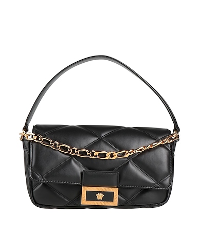 flap bag, leather, quilted, plain colour, brand logo, snap fastenings, internal pockets, detachable top handle, medium size, contains non-textile parts of animal origin