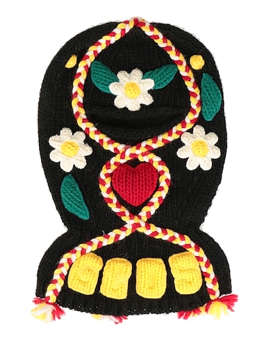 balaclava, knitted, medium-weight knit, floral-print, embroidered