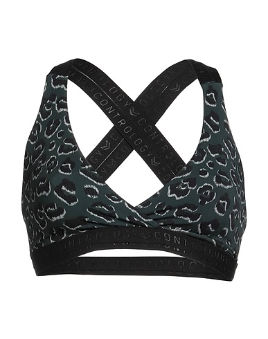 triangle bikini top, synthetic jersey, leopard-print, brand logo, stretch