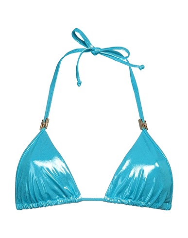 triangle bikini top, synthetic jersey, metallic, plain colour, metal applications, brand logo, stretch