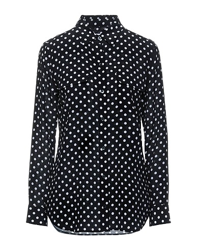 satin, brand logo, polka-dot, classic neckline, long sleeves, buttoned cuffs, front closure, button closing, two breast pockets