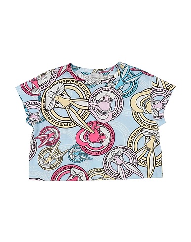 jersey, senza applicazioni, fantasia cartoon, collo tondo, maniche corte, senza tasche, elasticizzato, lavare a 30°, lavabile a secco, non candeggiare, non asciugare meccanicamente, stirare a max 110°