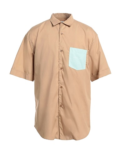 camicia regular, popeline, tinta unita con applicazioni, brand logo, decorato, collo classico, maniche corte, chiusura con bottoni, taschino singolo