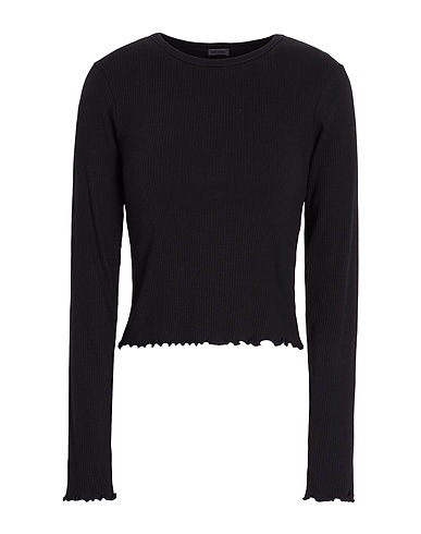 t-shirt, jersey, a coste, tinta unita, senza applicazioni, collo tondo, maniche lunghe, elasticizzato