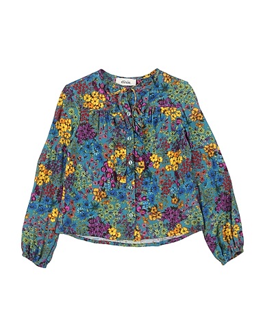 tela, ruches, fantasia floreale, collo con fiocco, maniche lunghe, interno sfoderato, bottoni, senza tasche, lavare a 30°, non lavabile a secco, non candeggiare, non asciugare meccanicamente, stirare a max 110°