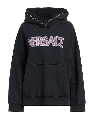 felpa francese, tinta unita con applicazioni, borchie, brand logo, collo con cappuccio, maniche lunghe, una tasca