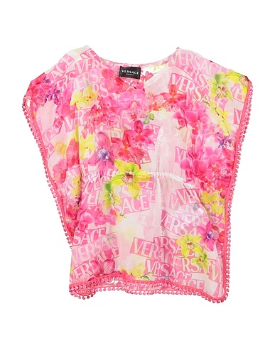 tela, applicazioni a contrasto, fantasia logo, fantasia floreale, collo a v, maniche corte, senza tasche, lavare a mano, lavaggio a secco con solventi delicati, non candeggiare, non asciugare meccanicamente, stirare a max 110°