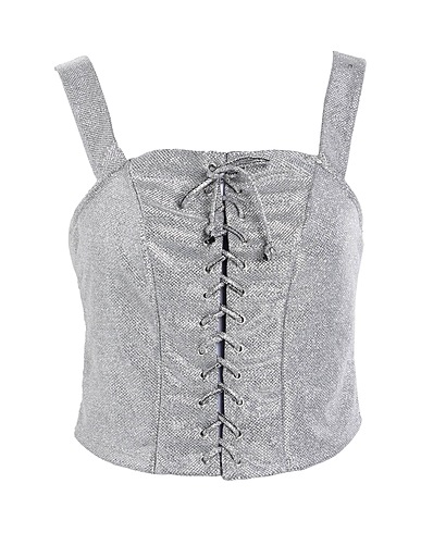 top, crêpe, tinta unita, glitterato, scollatura quadrata, senza maniche, chiusura da annodare