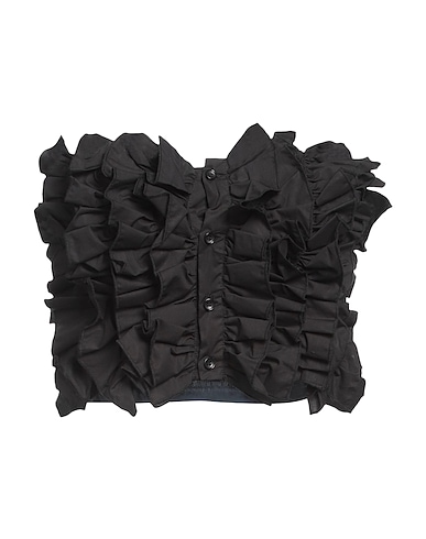 top a fascia, tela, tinta unita, arricciato, collo ampio, chiusura con bottoni