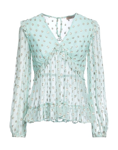 top con ruches, crêpe, lamè, ruches, a pois, collo a v, maniche lunghe, senza tasche
