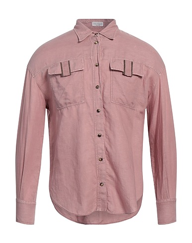 camicia, tela, tinta unita, borchie, collo tondo, maniche lunghe, chiusura con bottoni, taschino doppio