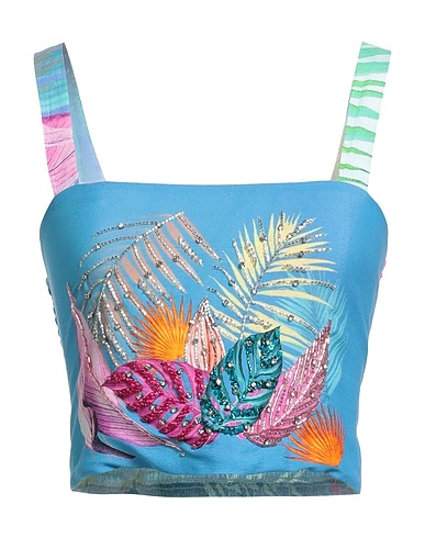 crop top, crêpe, fantasia floreale, cristalli, perline, scollatura quadrata, senza maniche, non lavare ad acqua, non candeggiare, non asciugare in asciugatrice