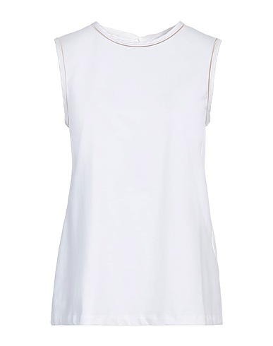 t-shirt, jersey, tessuto elasticizzato, tinta unita, finiture profilate, collo tondo, senza maniche, chiusura da annodare, lavare in lavatrice o a secco, non candeggiare, non asciugare in asciugatrice