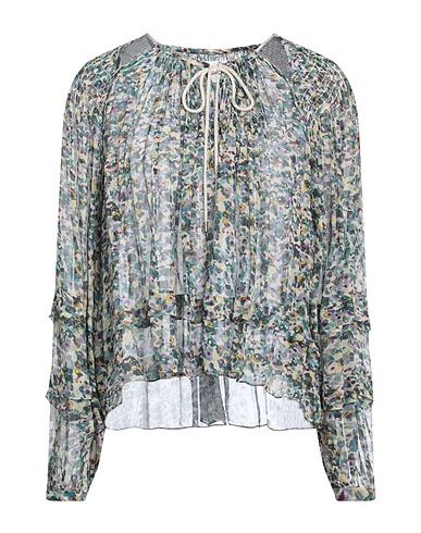 chiffon, decorato, a balze, multicolore, collo tondo, maniche lunghe, senza tasche, blusa bohémien