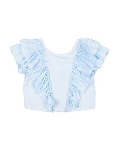 jersey, popeline, tinta unita, ruches, brand logo, collo ampio, maniche corte, lavare in lavatrice o a secco, non candeggiare, non asciugare in asciugatrice
