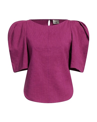 tela, senza applicazioni, tinta unita, collo tondo, maniche corte, maniche a sbuffo, 1 bottone, senza tasche, elasticizzato, top