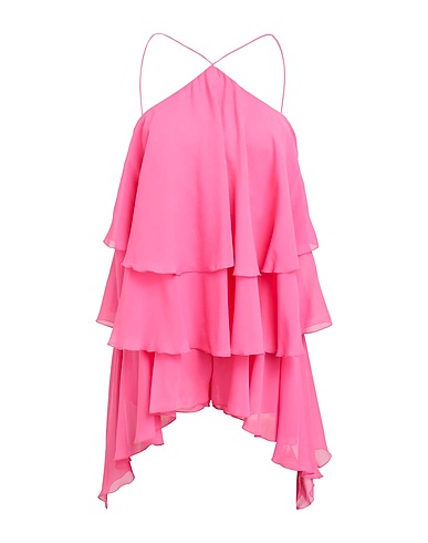 crêpe, tinta unita, a balze, collo a v, senza maniche, pantaloncino interno, chiusura con zip, chiusura con gancetti, lavare a secco, non candeggiare, non asciugare in asciugatrice